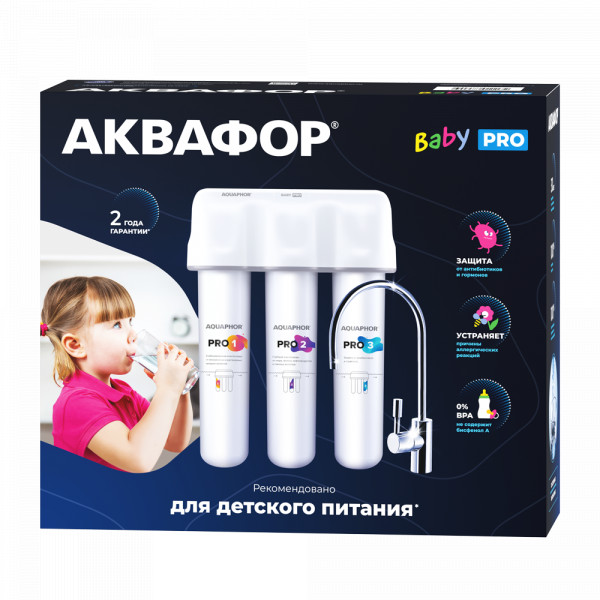 АКВАФОР Baby Pro оснащен дополнительным уровнем тонкой сорбционной фильтрации, который гарантирует полное удаление остаточных количеств фармацевтических препаратов (гормонов и антибиотиков) и других токсичных химических примесей.