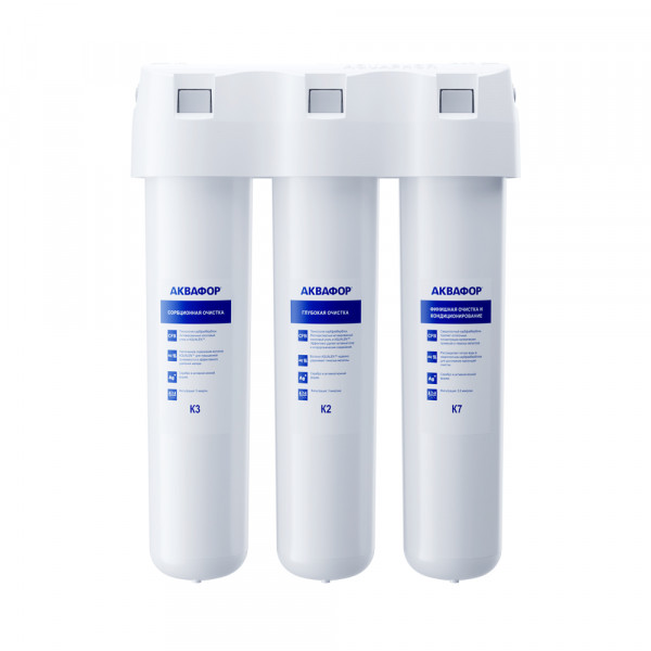 Обратноосмотические фильтры используются для абсолютной защиты от накипи, т.к. полностью устраняют соли жесткости из воды.нетЧисло ступеней очисткиКартриджи последовательно очищают воду и от видимых примесей, и от растворенных. Первый картридж задерживает более крупные частицы, а каждый последующий - более мелкие. Чем больше ступеней - тем лучше фильтр очистит воду: поймает более мелкие видимые частицы ржавчины, песка и ила, успеет захватить из воды максимум растворенных примесей - хлора, нитратов, тяжелых металлов и других.3МинерализацияПроисходит после финишной очистки воды. Необходима прежде всего в фильтре обратного осмоса, поскольку такой фильтр полностью устраняет из воды все примеси, в том числе минералы. Минералы добавляются в оптимальной концентрации - для пользы и привычного вкуса воды.нетПостфильтрацияФинальный этап очистки воды: картриджи постфильтрации удаляют самые мелкие механические частицы и кондиционируют воду, придавая ей более приятный вкус.нетНакопительная емкостьОбычно нужна в фильтрах обратного осмоса. Глубокая фильтрация требует времени. Чтобы Вам не приходилось ждать, пока вода наберется в чайник или кастрюлю, почти во всех моделях используется накопительный бак для чистой воды или другая емкость. В стандартном фильтре обратного осмоса под мойку воды в баке достаточно для семьи из 5-6 человек.нетФильтрующий модуль в комплектедаОтдельный краннетДавление в водопроводе не более, атмМаксимальное давление воды на входе в систему, при котором возможна стабильная работа фильтра.6,5Ширина, смОбратите внимание на габариты фильтра, и измерьте, сколько свободного пространства в предполагаемом месте установки.26,0Глубина, смОбратите внимание на габариты фильтра, и измерьте, сколько свободного пространства в предполагаемом месте установки.9,0Защита корпуса от гидроударовдаИсходная водаЖесткая вода – вода с избытком минеральных солей. От нее появляется накипь в чайнике, известковый налет на сантехнике и разводы на посуде. Мягкая вода – та, в которой мало минеральных солей. Нет накипи в чайнике и разводов на посуде. Фильтры для мутной воды и фильтры от ржавчины, как правило, имеют несколько стадий очистки и дополнительный полипропиленовый картридж. Он задерживает механические частицы ила, песка и ржавчины и защищает картриджи более глубокой очистки.мягкаяУстраняет мутностьМутность водопроводной воды может говорить о том, что в ней много мелких механических частиц. Важно, чтобы в фильтре был установлен дополнительные картридж механической предфильтрации (полипропиленовый) - он продлит жизнь остальным картриджам более тонкой очистки.нетУстраняет ржавчину, бурый осадокЛюбой фильтр под мойку удалит из воды крупные и мелкие частицы ржавчины. Некоторые фильтры имеют повышенный ресурс по железу: они дольше служат в такой воде, поскольку лучше подходят для удаления из воды железа и механических частиц ржавчины.нетЗащита от бактерийВсе проточные фильтры в той или иной степени защищают от бактерий. Например, добавление серебра препятствует их размножению. Это стандартная степень защиты. Если в семье есть дети, пожилые люди или аллергики, воду рекомендуется обеззараживать, то есть полностью удалять микроорганизмы. Повышенную защиту от бактерий дают фильтры с половолоконной мембраной. Это пучок тр