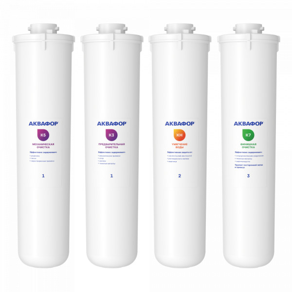 Комплект сменных модулей глубокой очистки и умягчения воды низкой и средней жесткости. Эффективно снижает появление белого налета, модуль с ионообменной смолой подлежит регенерации. В зависимости от жесткости исходной воды, регенерацию потребуется проводить в срок до 3х месяцев.