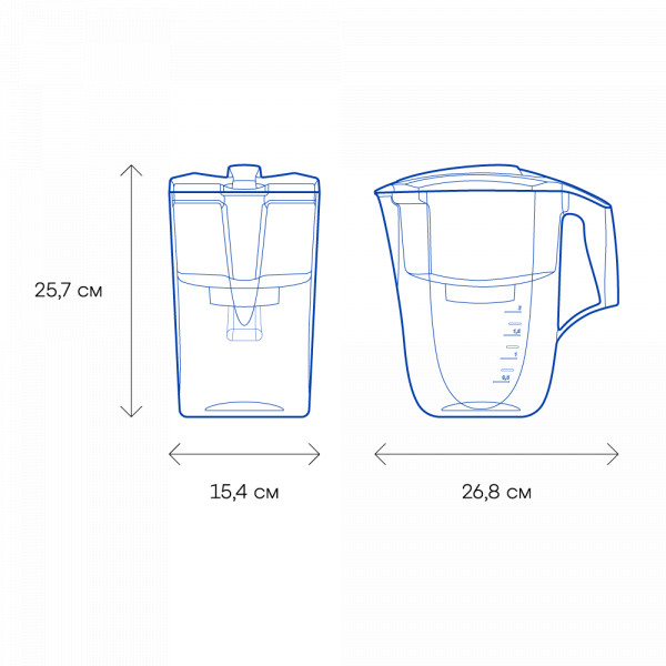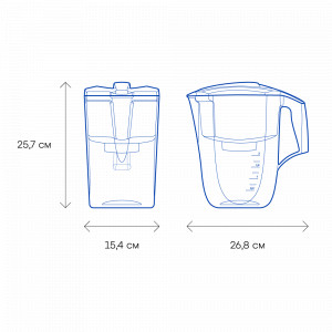 Актуальный дизайн и вместительность. Чистая вода без цвета, запаха и вредных примесей, таких как железо, хлор, оганические соединения, тяжелые металлы и другие распространенные токсины. Кувшин сделан из безопасного пищевого пластика.